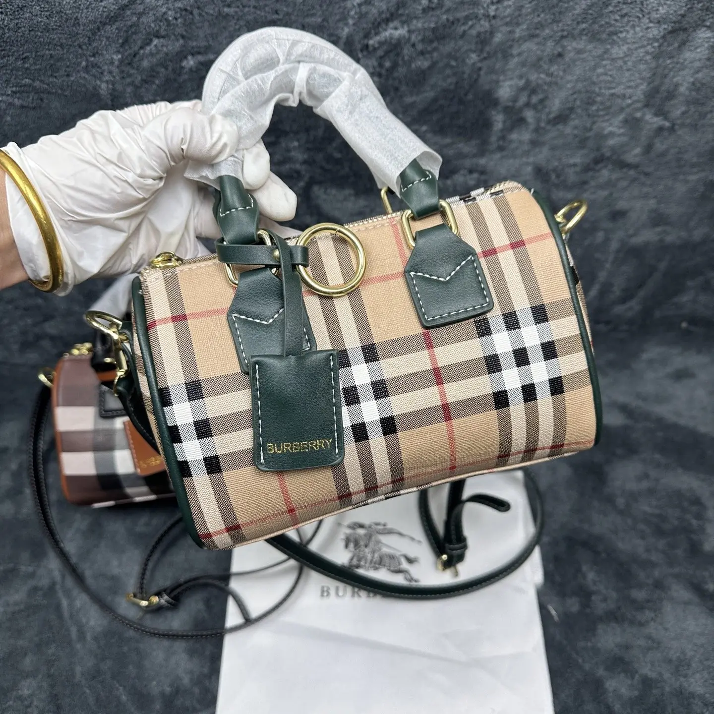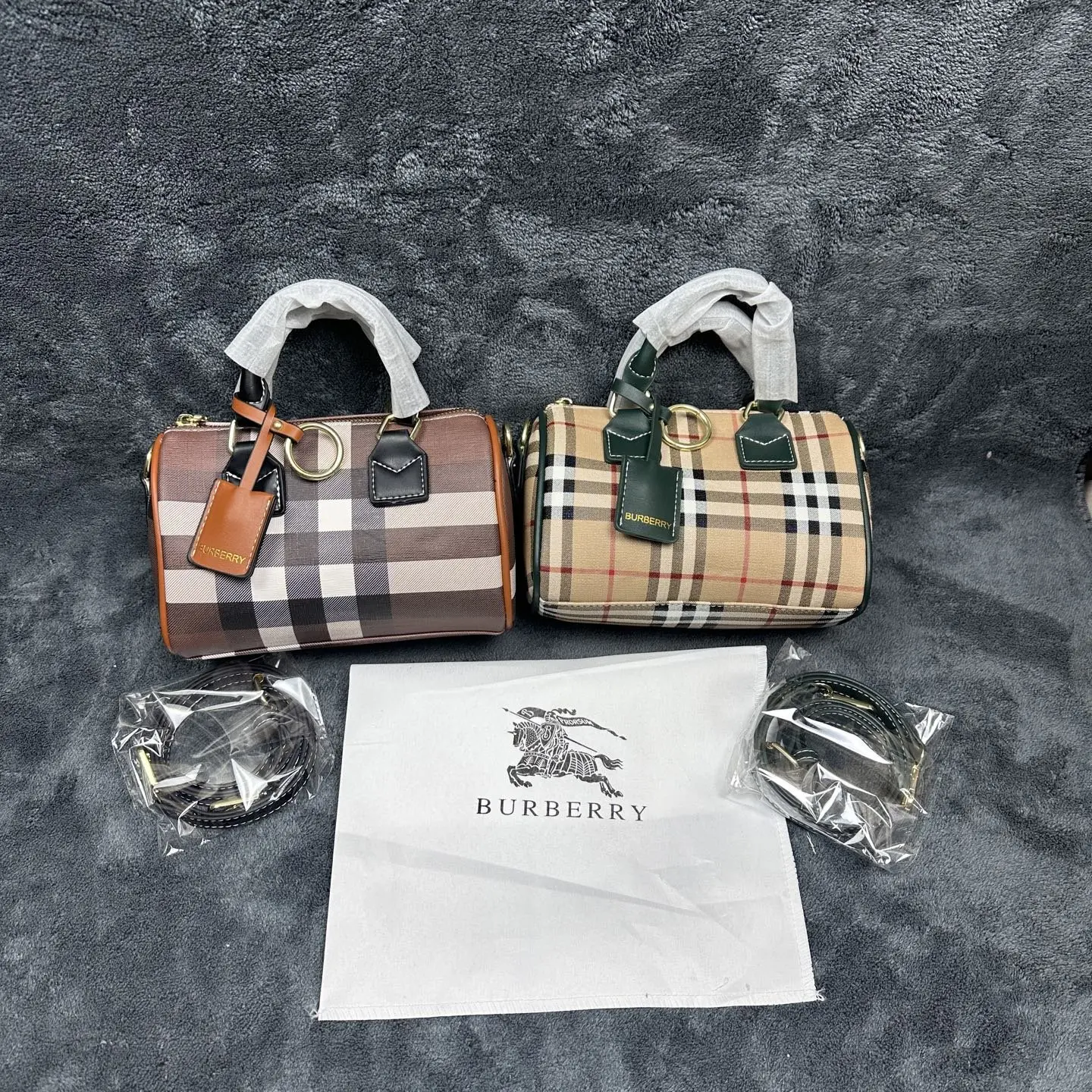 2 tone colours mini barrel bag comes with long strap, dust bag
