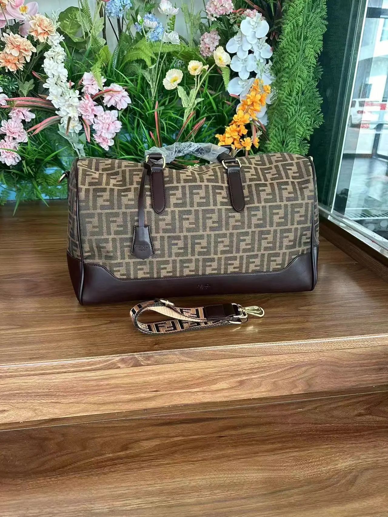 F printed Brown weekend holiday gym bag. 47cm by 29cm