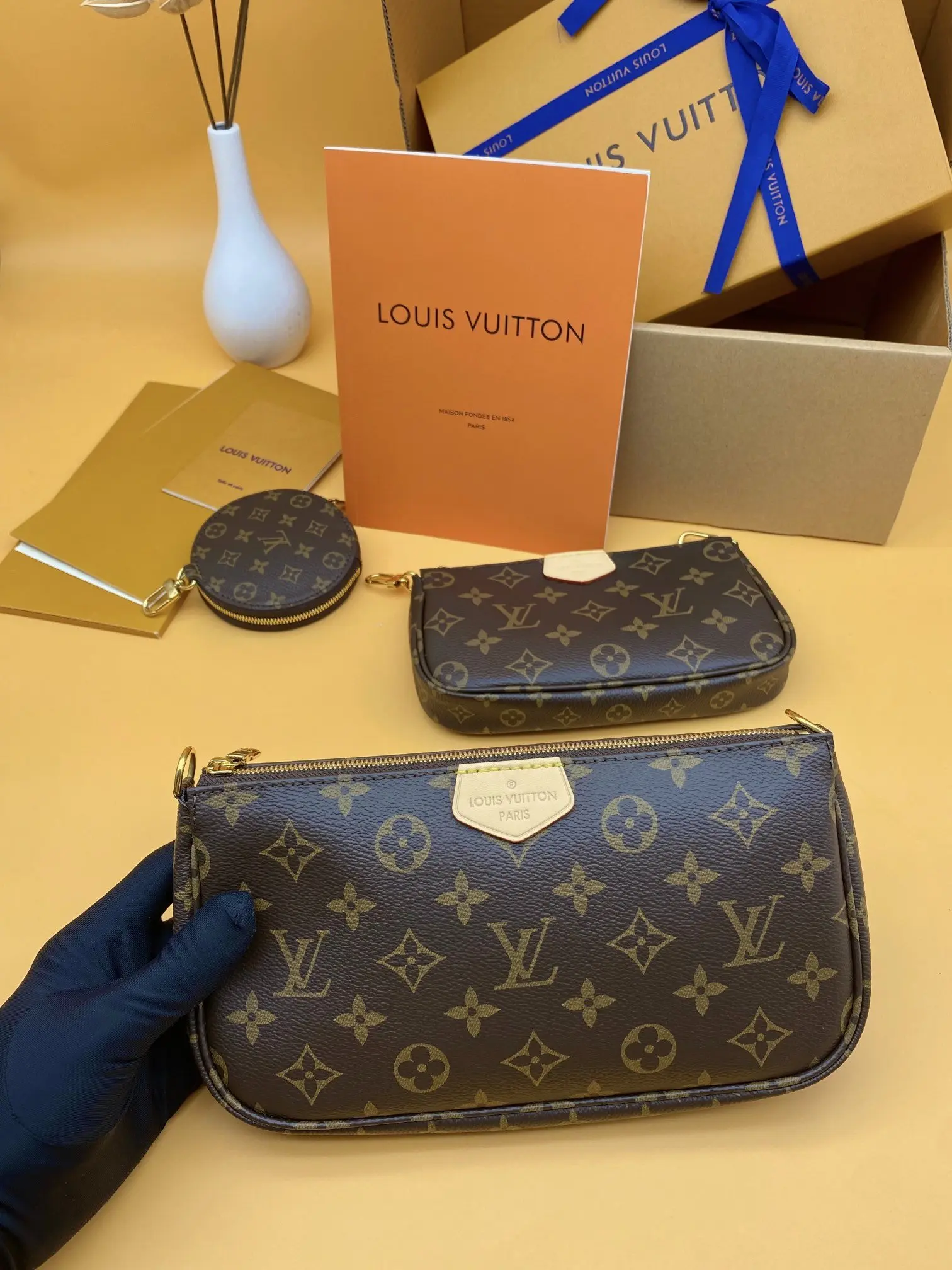 stunning multipouch bag real leather with box dustbag and papers. black or pibk strap options