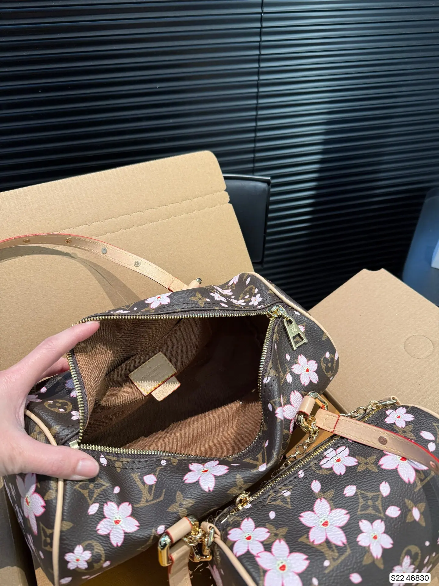 real leather barrel bag, comes boxed with papers and dustbag