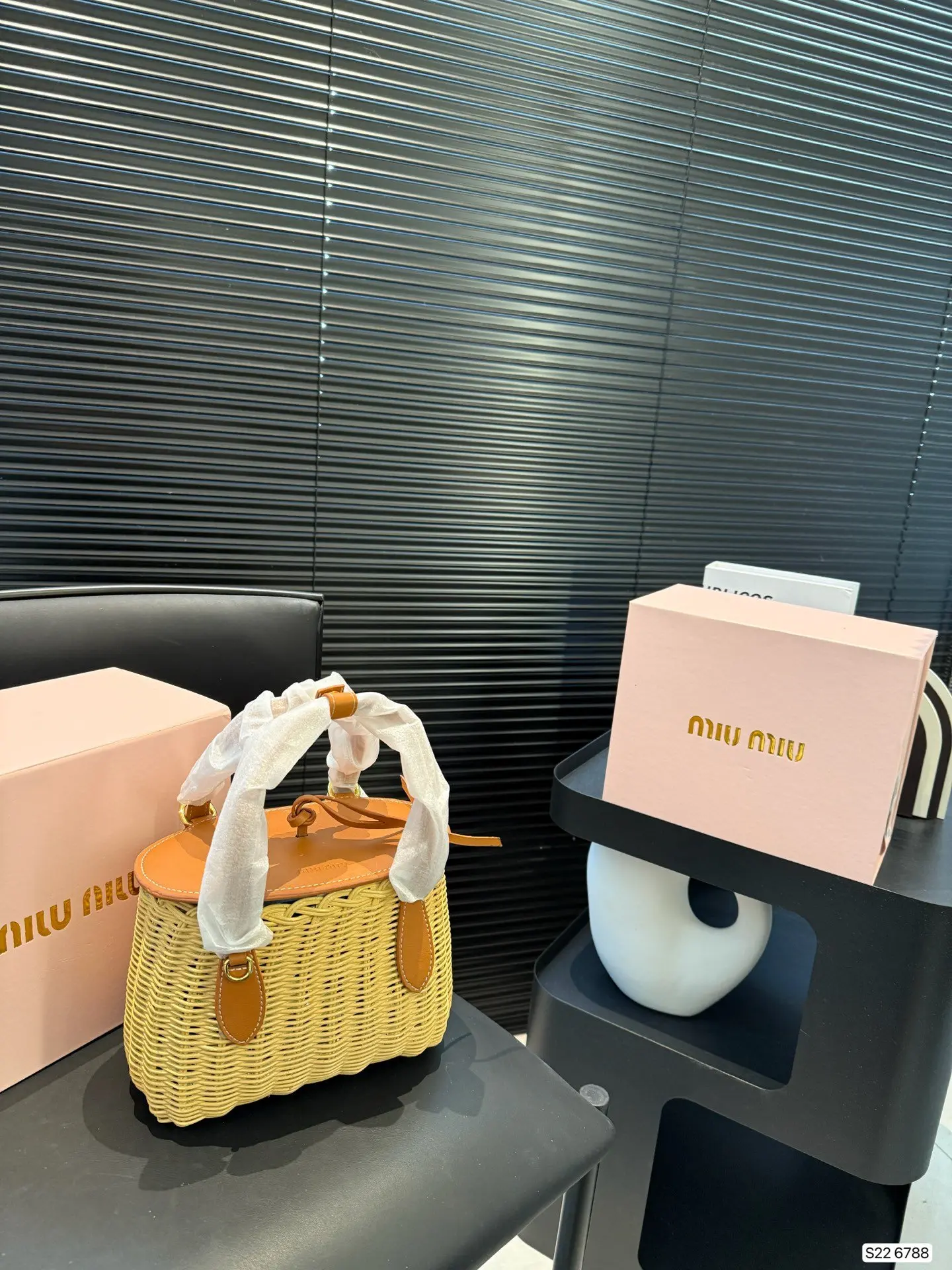 M basket bag with leather straps 4 colours. boxed with papers and dustbag