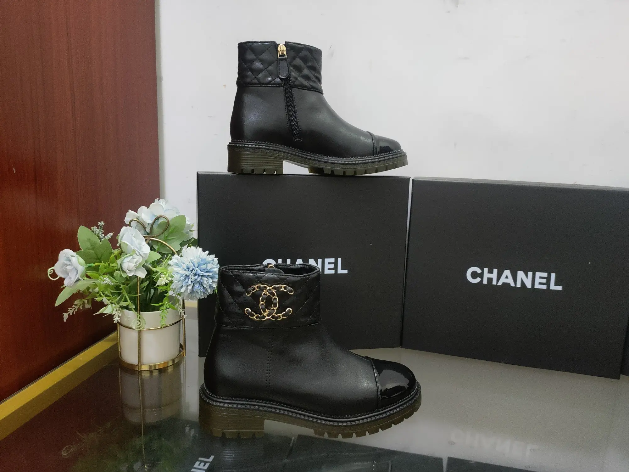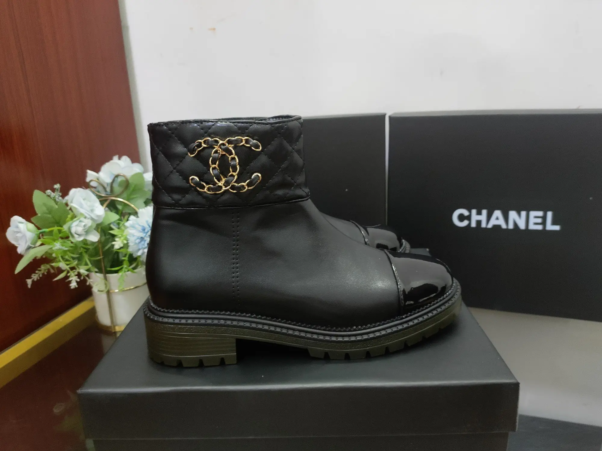 top quality boxed with papers. Black quilted with paintant toe. gold hardware.